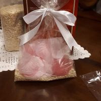 Buonasera! Ieri io e mia mamma abbiamo preparato delle prove: 1 sacchetto da dare agli invitati all'uscita della chiesa (credo li metteremo in un bel cesto) con riso e petali, e 1 sacchettino con...