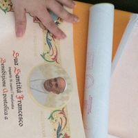 Superrrt felicissima..!! È appena arrivata la pergamena della benedizione del Papa ed è arrivata velocissima, sono super efficienti..! Che bellooo..! Pian piano il puzzle si completa, giorno dopo...