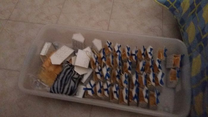 Ciao belle spose! dopo aver fatto 45 fiocchetti a mano, li ho tutti attaccati con la colla a caldo che ve ne pare? mancano solo i nastrini (uguali al fiocco)con le etichette dove scriveremo una frase...