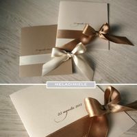 Ciao sposine, oggi sono contentissima! ieri a -300 giorni abbiamo confermato le partecipazioni.. che bello!! ed un altro piccolo passo é fatto.. Sono di forma quadrata con il fiocco esterno color...