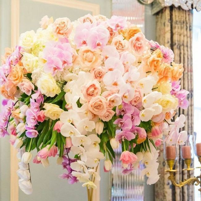 Ciao sposine anche stamattina ho qui un quesito. Quale preferite? 1) bianco rosa glicine pesca2) Bianco rosa glicine pesca e un tocco di celeste I fiori saranno orchidee e rose con tanta nebbiolina