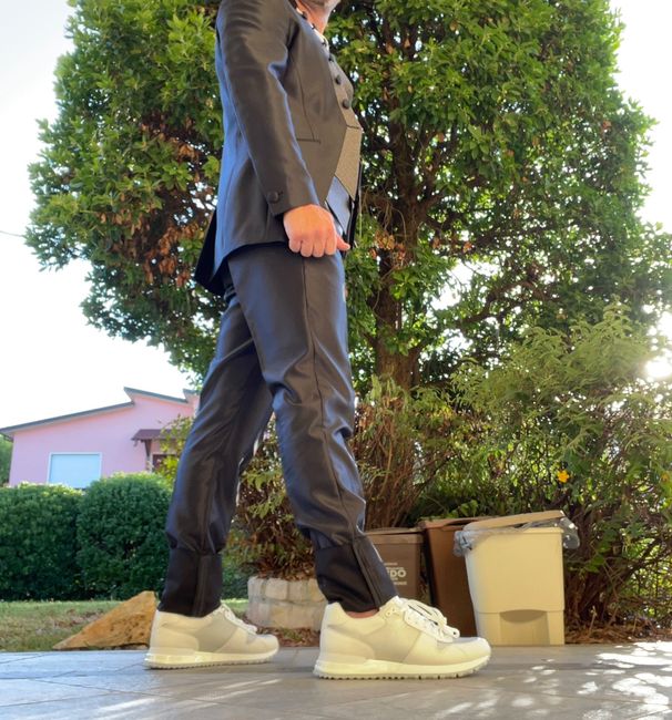 Ciao sposine! A -38 gg dalle nozze sono già in panico! Il mio fm si è preso x le nozze un paio di Adidas.. e stanno anche molto bene con l abito! la conformazione delle sue gambe lo faceva stare...