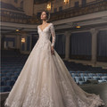 Chiudiamo con un altro abito di Nicole, ormai eletta regina indiscussa degli abiti principeschi. Questo modello è in color cipria, con tulle ricamato in pizzo perlato e lunghissima coda.