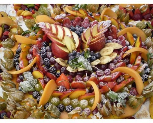 per questo ultimo buffet è consigliabile la scelta di piccoli frutti, secondo le stagioni, come le ciliegie, i fichi, acini d’uva ecc. Se è estate potete preparare fette di angurie molto fresche, oppure delle coppette di macedonia con l’aggiunta di un sorbetto o palline di gelato