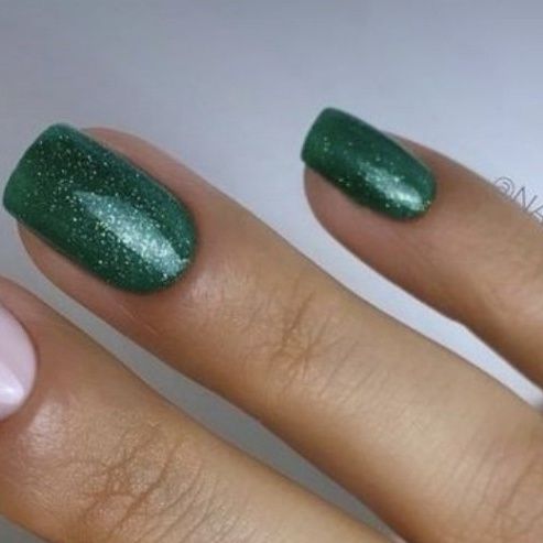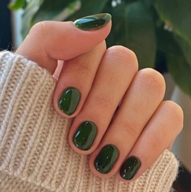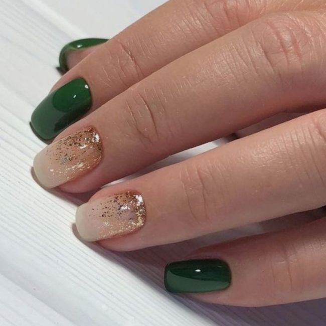 Ho votato una immagine qualsiasi, perché non ho trovato ciò che vorrei suggerirti... Eventualmente, potresti lasciare tutta l'unghia biancolatte o neutra, colorando solo la punta con un tocco del verde prescelto. Come una sorta di french manicure al contrario.