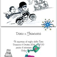 Finalmente oggi ho ritirato le mie partecipazione di nozze. Il disegno l'ha fatto un mio amico d'infanzia...ho voluto qualcosa di "solo mio" anzi "solo nostro" come invito alle nozze. I due personaggi...