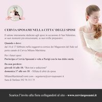 Ciao donzelle, ecco qua un evento che vi può decisamente interessare: CERVIA SPOSAMI 2013, la fiera nuziale per gli sposi proprio nel WE di San Valentino! Tipo di evento: Fiere nuziali Indirizzo:...