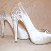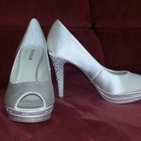 Scusate ma non è uscito il commento. La foto non rende giustizia (per me) ma sono di raso avorio e tacco e plateau di pelle cangiante. Ma mi chiedevo se mettere sul davanti una clip di strass le...