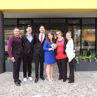 Eccoci qui! Alla mia sinistra Kristina e Chantal! Alla destra di mio marito Luca, Riccardo e Patrick Voi avete una foto con i vostri testimoni? Postatela!