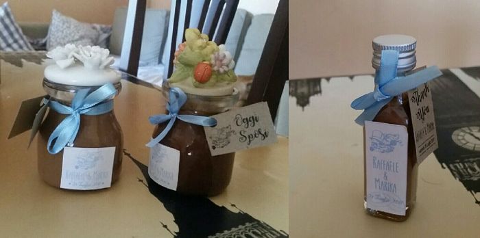 Ecco a 15 giorni dal matrimonio bomboniere e segnaposti.Le bomboniere sono quei barattolini di cioccolato fatto in casa, ne ho fatti di 3 gusti, cioccolato al latte, fondente e bianco. E di due tipi,...