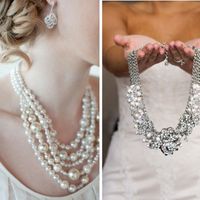Cosa dite di collane "statement" per la sposa? il mio abito avrá un corpettino che dopo la chiesa tolgo e e avrò uno scollo dritto senza spalline, pensavo di indossare una collana del genere, l'abito...