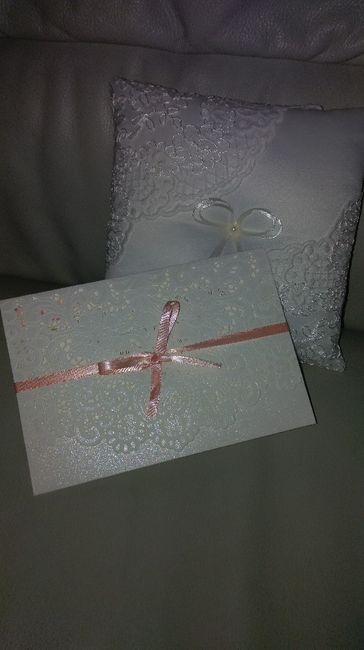 7Ciao ragazze. Finalmente oggi sono arrivate le partecipazioni e anche il cuscinetto x le fedi 😍😍. Come vi sembrano??