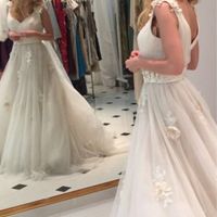 Ciao sposine !! -40!!! Questo e’ il mio abito (le foto risalgono alla data dell’acquisto) vi piace? consigli su acconciatura ? A me piacerebbero capelli sciolti ma un po’ raccolti al lato .. qualcosa...