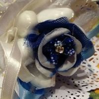 Ecco il mio segnaposto un mini bouquet di confetti. Il centrino sarà un po' più piccolo e metterò due confetti in più ora sono 5 e il nastro sul blu.. E aggiungerò della gypsofila finta. Che ne dite? ...
