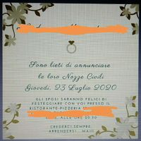 Amiche che hanno dovuto rimandare il rito religioso al 2021 e faranno il civile quest anno con pochi intimi...avete pensato agli inviti x il civile??tipo bigliettini non troppo impegnativi??idee a...