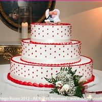 Ciao ragazze Come vi sembra l'idea di realizzare il tema a pois? Sfondo bianco e pois rossi... Come esempio vi posto questa torta per farvi capire lo stile che vorrei scegliere... che ne dite?...