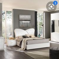 La superficie del comò è tutta fatta di brillantini e vetro. Ha questa particolarità del comò e dei comodini decentrati e un decoro sul superficie del mobile con delle maniglie altrettanto...