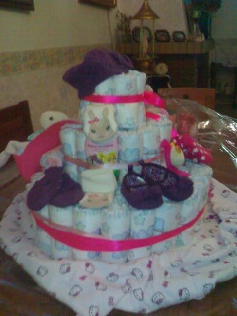 Appena finito la torta di pannolini per mia cognata!!!vi piace??è la prima che ho relizzato!e un pensiero per un'amica neomamma!!