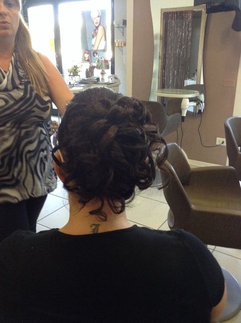 ciao sposine....oggi ho fatto la prima prova acconciatura.....premettendo che il mio vestito e romantico.....pure un po principesco!!!!!!!guardate e datemi la vostra opinione......baci baci a tutte Eccolaaaaa Che ne dite?