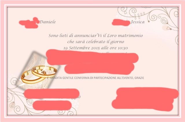 4090 giorni faCiao a tutte!! Cercando di farmi un'idea sulle partecipazioni, ho visto ke si usa fare 2 fogli (chiamiamoli così): uno x la cerimonia e uno x l'invito al ricevimento. Siccome tutti gli invitati alle nostre nozze (in Comune) sono anke invitati alla...