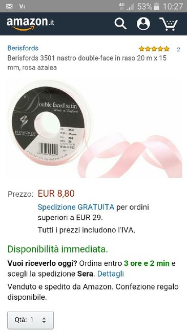 Ciao! A -43 sto passando le mie ferie a cercare il materiale per le ultime cose da fare (tableau, addobbi vari) e in particolare non riesco a trovare un nastro in poliestere (in raso esiste ma costa 5 volte in più ) di color rosa chiarissimo (quasi...