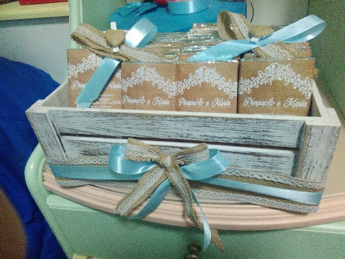 Finalmente abbiamo le nostre golose partecipazioni shabby sono delle tavolette di cioccolato rivestite con carta digitale con sfondo iuta e finto merletto. Saranno pronte la prossima settimana. Pensavo di metterle in una cassetta di quelle...