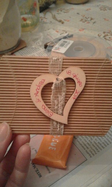 Ciao a tutte sposine ho bisogno di un vostro parere. Come segnaposto ho preparato queste mollette, e vorrei metterle al tavolo sul tovagliolo di ogni invitato insieme al sacchetto per la confettata (idealmente la molletta serve per chiudere poi il...