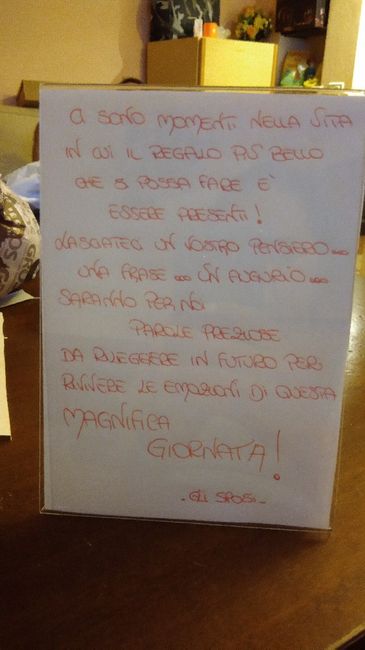 Prendendo spunto da un post che ho trovato su qyesto forum... Per indicare il guestbook ho fatto questo quadruccio... Magari può essere utile a qualcuno... Vicino ci sarà il libro guestbook con la penna