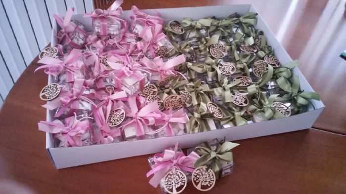 Oggi a -50 abbiamo ritirato le prime bomboniere x non invitati, infiocchettate con i ns/colori e albero della vita cuore matto