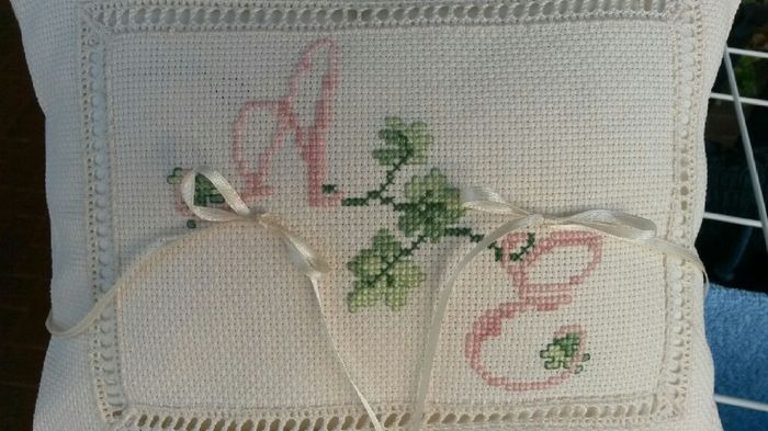 Oggi ho finito di ricamare il portafedi, ho ripreso colori e motivo delle partecipazioni. Mi ha fatto tribolare un po', ma sono soddisfatta