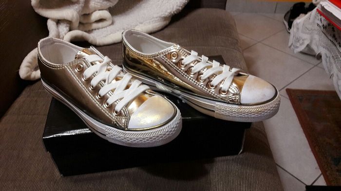 Ciao ragazze , il mese scorso ho postato una foto dei sandali che ho preso per la cerimonia. Ho il tema oro quindi le ho prese oro. Sabato girando per negozi ho trovato anche le scarpe per quando ballaremo dopo il ricevimento, dopo il taglio della...