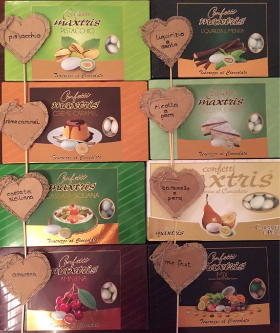 Condivido il mio ultimo fai da te...palette gusti confetti per la confettata,matrimonio rustico shabby...I confetti li metterò in sacchetti di carta bianchi (quelli del pane), saranno arrotolati nella parte superiore e sul davanti avranno un fiocco...