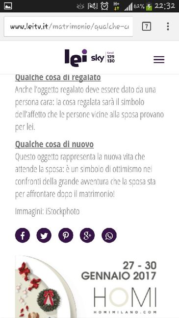 Ciao ragazze, chi di voi mi aiuta a ricordare cosa prevede la tradizione?Qualcosa di nuovoQualcosa di prestatoQualcosa di bluQualcosa di regalatoE??????? C'è altro?