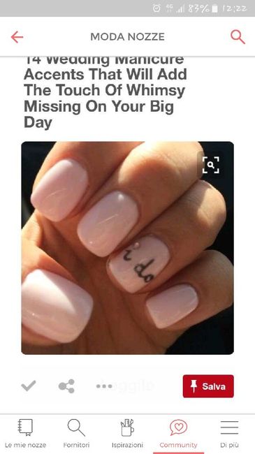 Salve a tutte, mi consigliate dei modelli di unghie per il matrimonio? Mi piacevano queste tipologie (trovate su internet ) ma sono indecisa.. voi come le avete fatte? ☺💅Ps. il mio vestito è interamente bianco stile principessa e le mie damigelle le...
