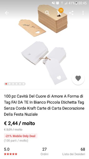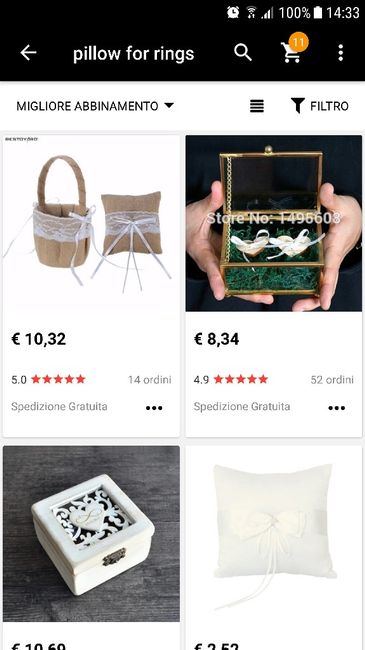 Buongiorno sposine oggi mi sono messa alla ricerca di fai da te per il matrimonio,in più sono alla ricerca di un porta fedi carino..solo che quando nella ricerca vado a scrivere porta fedi su aliexpress mi esce scritto articolo non trovato..secondo...