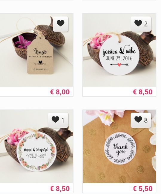 Buonasera sposine. Chi di voi ha fatto le etichette personalizzate da mettere legate ai segnaposto o alle bomboniere? Conoscete qualche sito internet dove ordinarle senza spendere una fortuna?