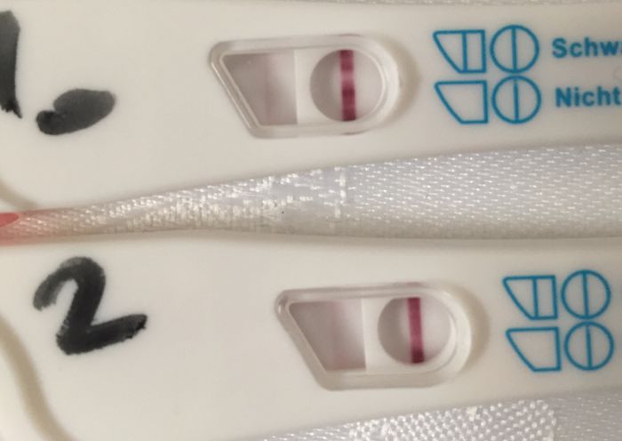 Ragazze ho fatto un test di gravidanza purtroppo non proprio con le prime urine perché alle 5 sono andata in bagno e quindi alle nove erano le secondo urine .. comunque molte sapete che a febbraio ho avuto un aborto.. come vi sembra io la vedo la...