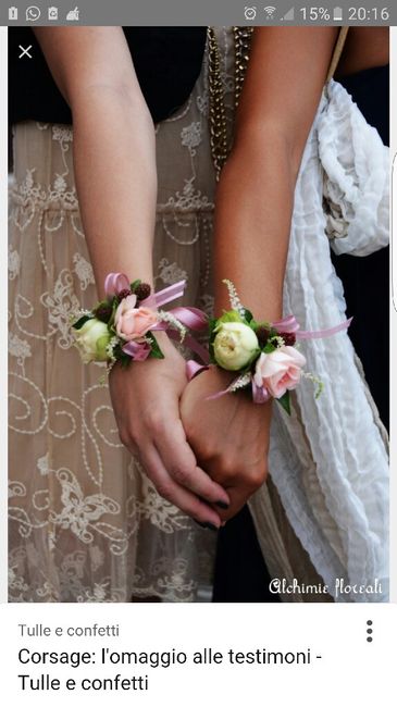 ciao ragazze oggi ho pensato di fare dei bracciali di fiori x le fidanzate dei testimoni del mio fidanzato e che sono due mie amiche e dalla mia parte alla fidanzata di mio fratello (lui sarà il mio testimone) e giustamente alla mia testimone che...