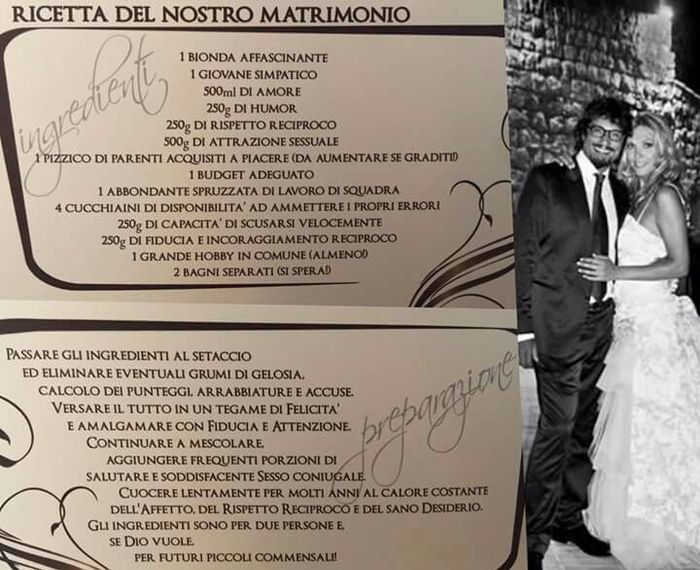 Ciao ragazze, oggi lo chef Alessandro Borghese ha pubblicato sul suo profilo la partecipazione delle sue nozze, avvenute 8 anni fa. Guardate che carina, mi ha colpito molto :-)