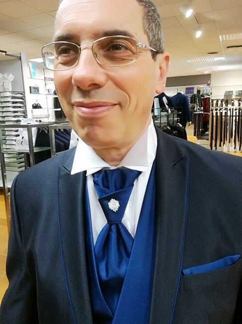 Questa mattina siamo andati a scegliere l'abito per papà e l'abbiamo trovato. È di un blu meraviglioso con camicia bianca ,cravatta blu e copribottoni per le maniche..😍😍😍😍😍😍😍sono felicissima
