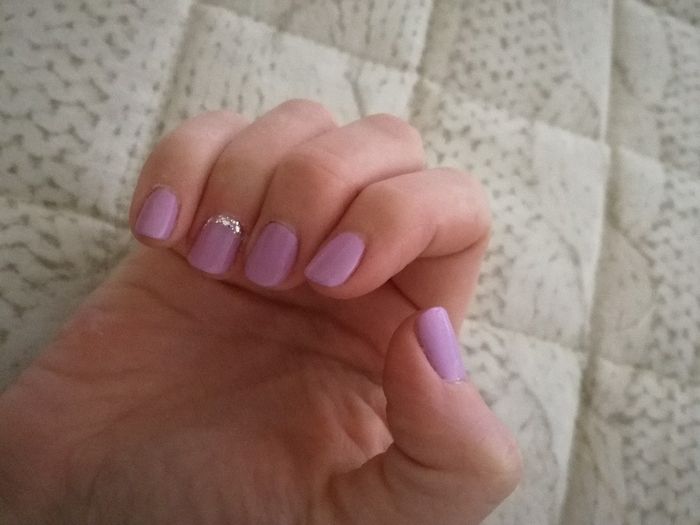 Cosa ne dite della prova? Volevo provare il colore, ma per me è troppo sul rosa volevo un lilla più tendente al viola! Tenete conto che mi piacciono i colori decis e i colori del matrimonio sono lilla e bianco! L'anulare sono indecisa se lasciarlo...