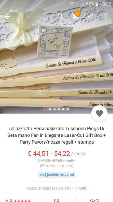 Buongiorno sposine! Volevo sapere se qualcuna di voi ha preso questi ventagli su aliexpress: come sono? E come si fa a personalizzare la scritta?perché quando li selezioni non ti dà l'opzione di indicare che scritta si vuole...grazie mille!
