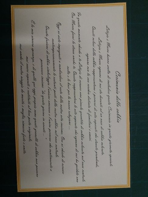 Ieri finite di sistemare le bolle di sapone al momento del taglio della torta e le stelline magiche per accendere al rito della sabbia
