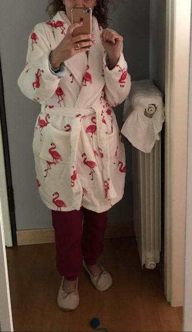 Ciao spose! È arrivato il mio acquisto: il completo per la preparazio è arrivato! forse cambierò solo la misura della vestaglia perché è troppo grande . Le ciabatte sono calde e morbide, il pigiama moto bello e la vestaglia è il mio pezzo forte.... ...