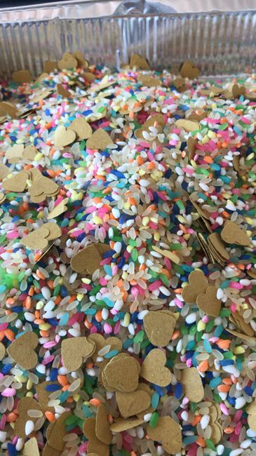 Ciao!!! Mi piacerebbe fare dei conetti cn riso colorato qualcuno sa cm si fa? Altrimenti tipo coriandoli da tirare insieme al classico riso.cmq qualcosa di colorato😉!!!