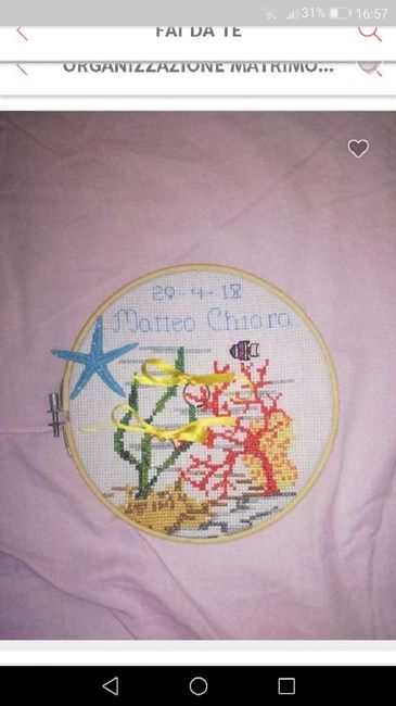 Ciao a tutte ragazze, io ed il mio fm abbiamo deciso che x le nostre nozze il portafedi ce lo realizzerà la mia adorata suocera, così oltre a fare una cosa carina x noi sarà un ricordo che conserveremo x sempre e ce la ricorderà nel tempo. Voi invece...