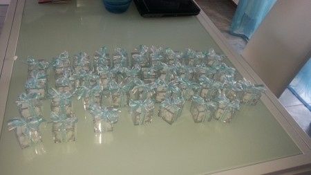 Ed ecco le mie bomboniere. Sto iniziando ora a fare il fiocchi per lo spargimiele Mi piacciono un sacco. Poi le metterò in una scatolina bianca con fiocco color tiffany Di sicuro, non c è nulla di più dolce