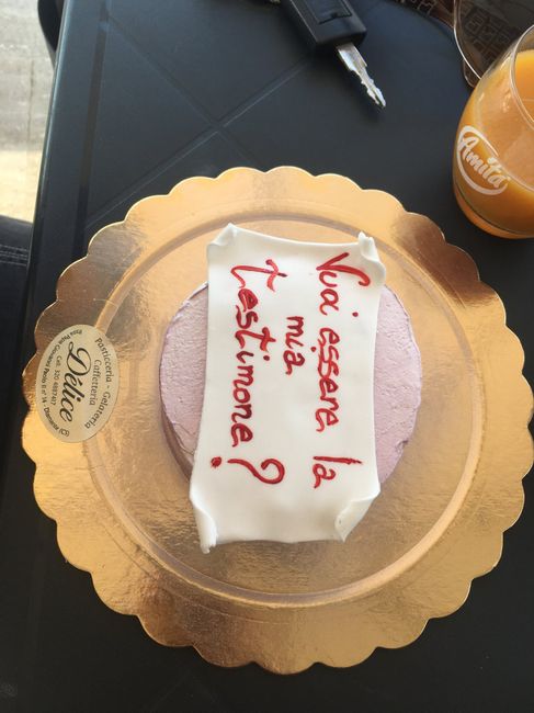 Ecco come ho chiesto alla mia amica se voleva essere la mia testimone di nozze 😍 mi sono fatta fare una piccola torta con questa scritta e il gg dopo siamo andate a fare colazione in questa pasticceria e le ho fatto la sorpresa così invece del...