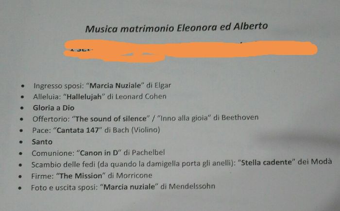 Ciao ragazze, forse abbiamo scelto il repertorio ufficiale per la cerimonia. Suonando io in una banda e avendo 30 musicisti a mia disposizione non è stato semplice decidere i brani. Che ne pensate? Il brano dei modà lo suonerà mia sorella con il...