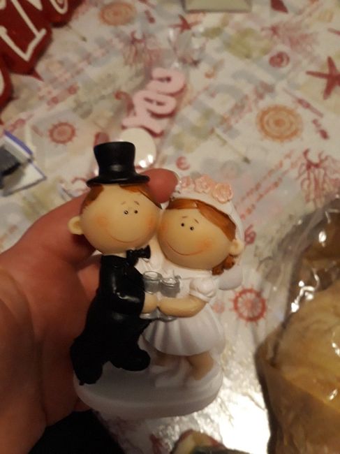 La mia bomboniera finita il kake topper per la torta e poi i mio fazzoletto per non invitati e poi il mio fiore che mettero in testa ciao e buona sera a tutti grazie a chi ridponde meno 10 giorni al si